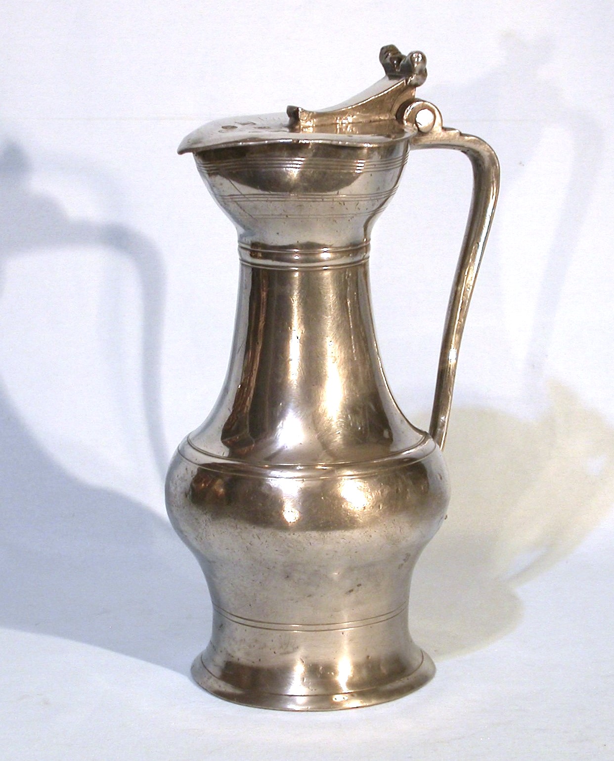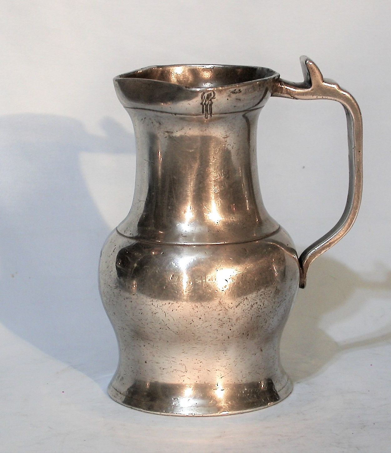 PICHET en étain de forme balustre à base déprimée, gorge en quart de rond et poucier à glands.