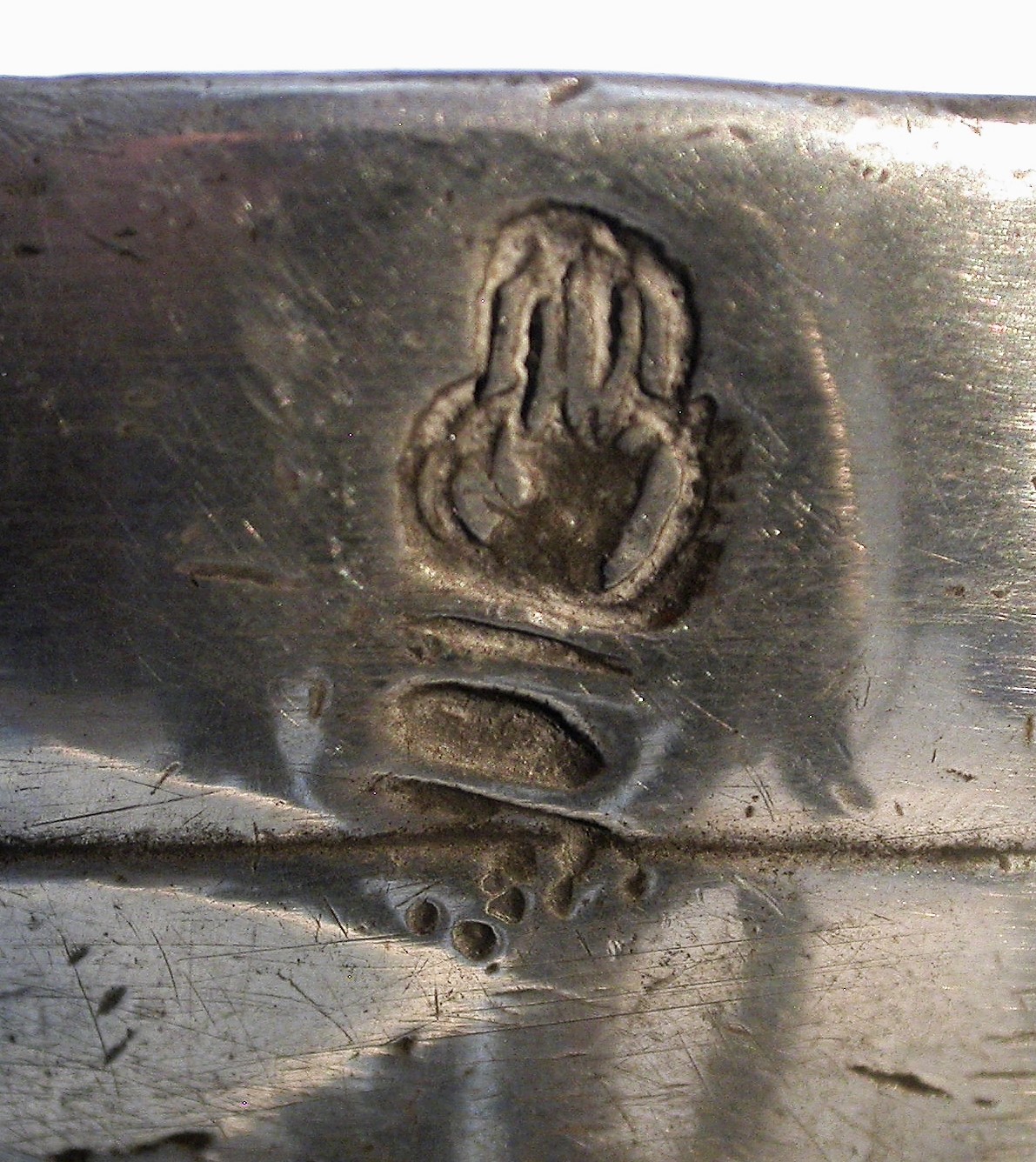 Rarissime est un qualificatif insuffisant, c’est la seule jauge de cette taille jamais rencontrée en quarante ans, de surcroît en parfait état et tôt d’époque. Le poinçon au millésime de 1704 est répertorié et permet une datation « serrée » de cette mesure à alcool.