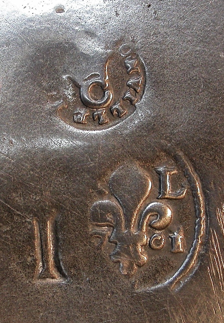 Poinçon de François VAUTRIN reçu maître en 1698 : grand lis couronné / 2 étoiles / (99).