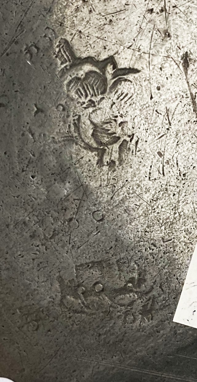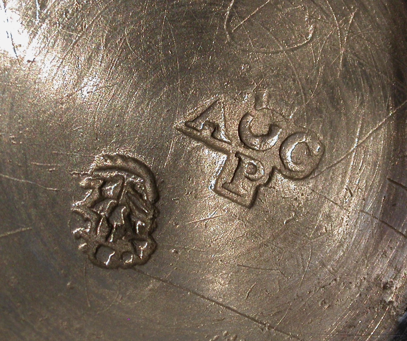 Quand son fils devient lui aussi maître, Claude 1er ajoute la mention « Père » à son poinçon. Ce plat peut donc être situé tôt dans sa production – Bon état, quelques points d’oxydation et un petit rebouchage quasi invisible
