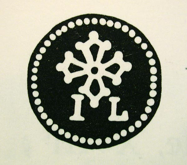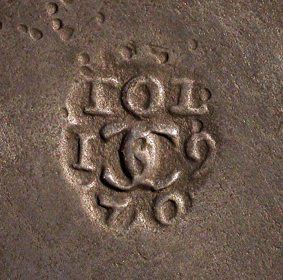 Marque de propriété composée de quatre couples d’initiales, laurées et datées 1702.