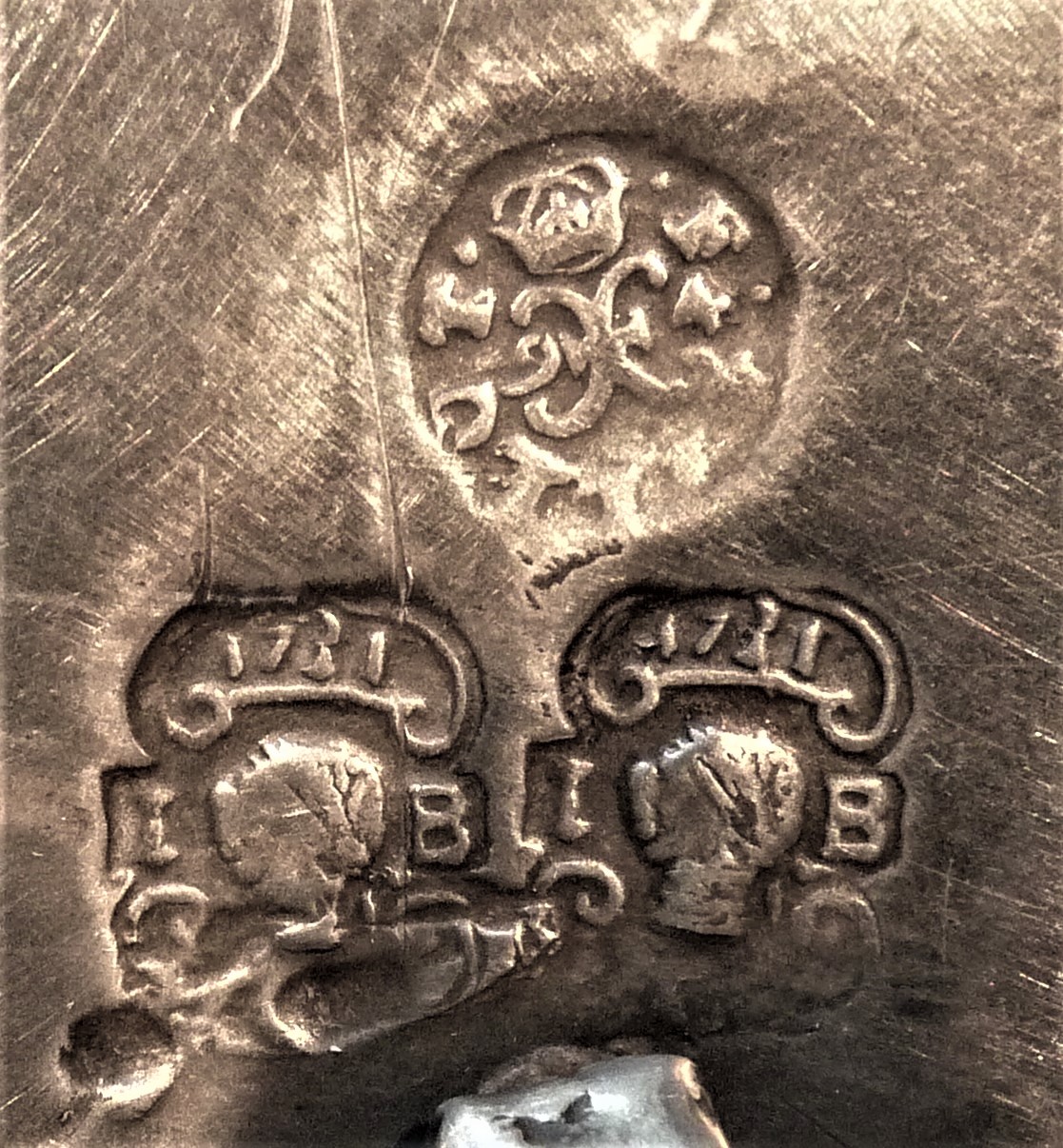 Poinçon de maître non identifié : tête de maure / 1731 / I.B.(G ou O).