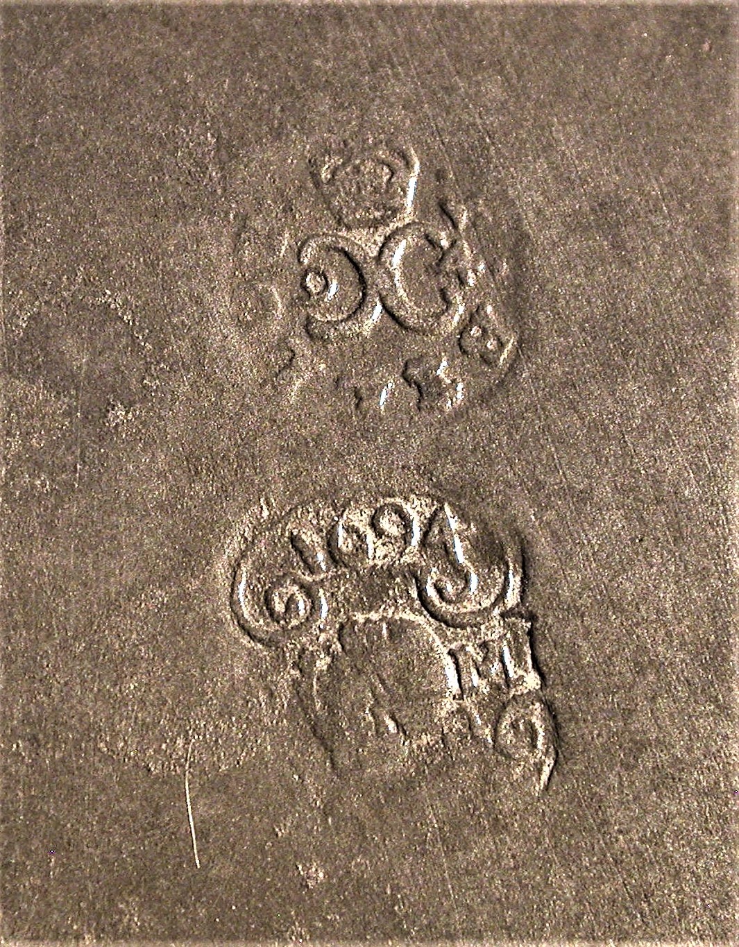 Compte tenu de la typologie de l’objet il est plausible que ce millésime de 1693 ait été utilisé après 1696 date à laquelle la Lorraine redevient ducale et supprime l’obligation du contrôle.